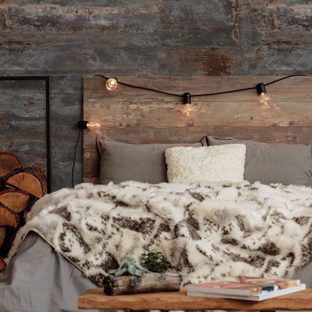 Combine velvet throws with brushed metal lamps and softly grained wood-effect wall panels. The interplay of textures is what brings warmth and complexity to your bedroom.